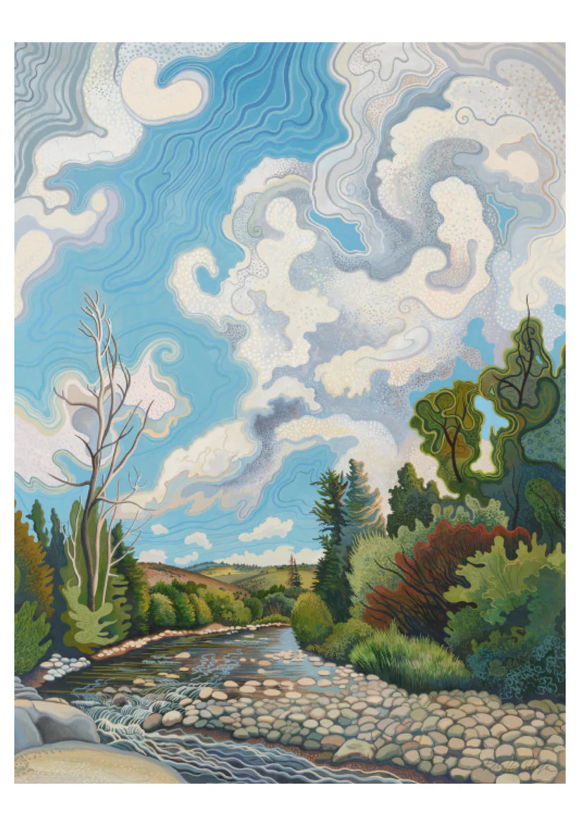 20 blank notecards (5 each of 4 designs) with soft white envelopes. Card size: 7 x 5 inches. Contains five each of the following notecards: Curious Clouds Surprised the Sky, 2019; Her Little Parasol to Lift, 2019, Swallowtail Dance, 2018; Moonrise Over Stevens Peak, 2022.