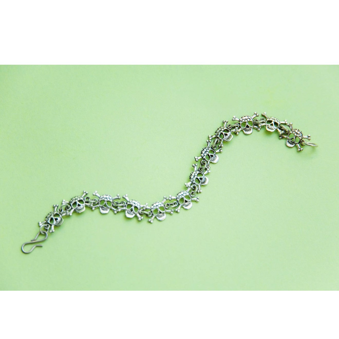 Sterling silver articulated sugar skull and crossbones bracelet.